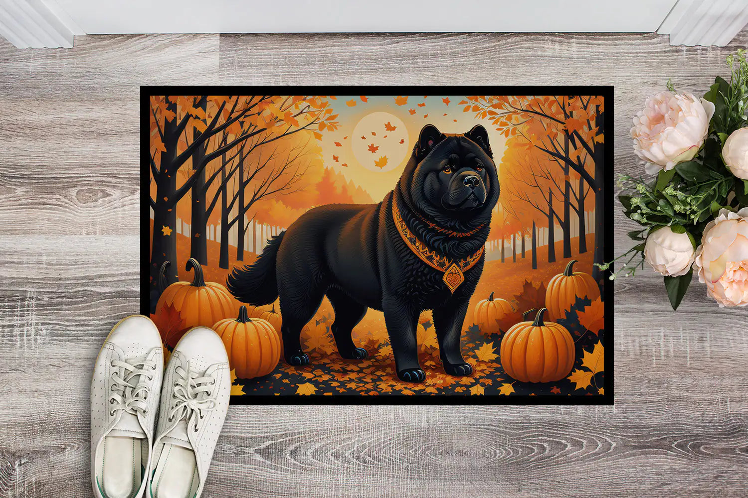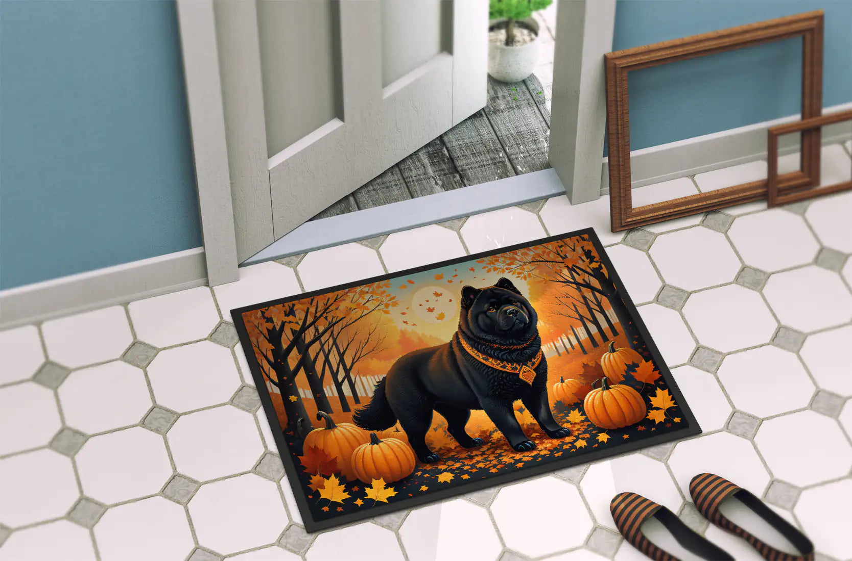 Doormat featuring breed specific Chow Chow artwork. Welcome your guests in style with our Artwork Door Mat, designed to withstand almost any weather condition. This mat, measuring approximately 18 by 27 inches, is held together by durable black binding tape. Its top layer, composed of polyester felt, is dyed with the eye-catching image you see on the mat. A few layers below provide the mat with stability, while its rubber bottom is stamped to help prevent slipping and ensures safety. Our mat works wonderfully as both an indoor or outdoor door mat. For cleaning, simply hose it off with water or use a power washer - no need for any cleaner that produces suds. Avoid scrubbing with a brush, instead, opt for the vacuum on floor setting. Designed manufactured and printed in the USA, this mat is a perfect addition to your porch, outdoor kitchen, entryway, or any indoor space. Its unique design makes it a charming decorative rug that greets your guests and adds a stylish touch to your home decor.