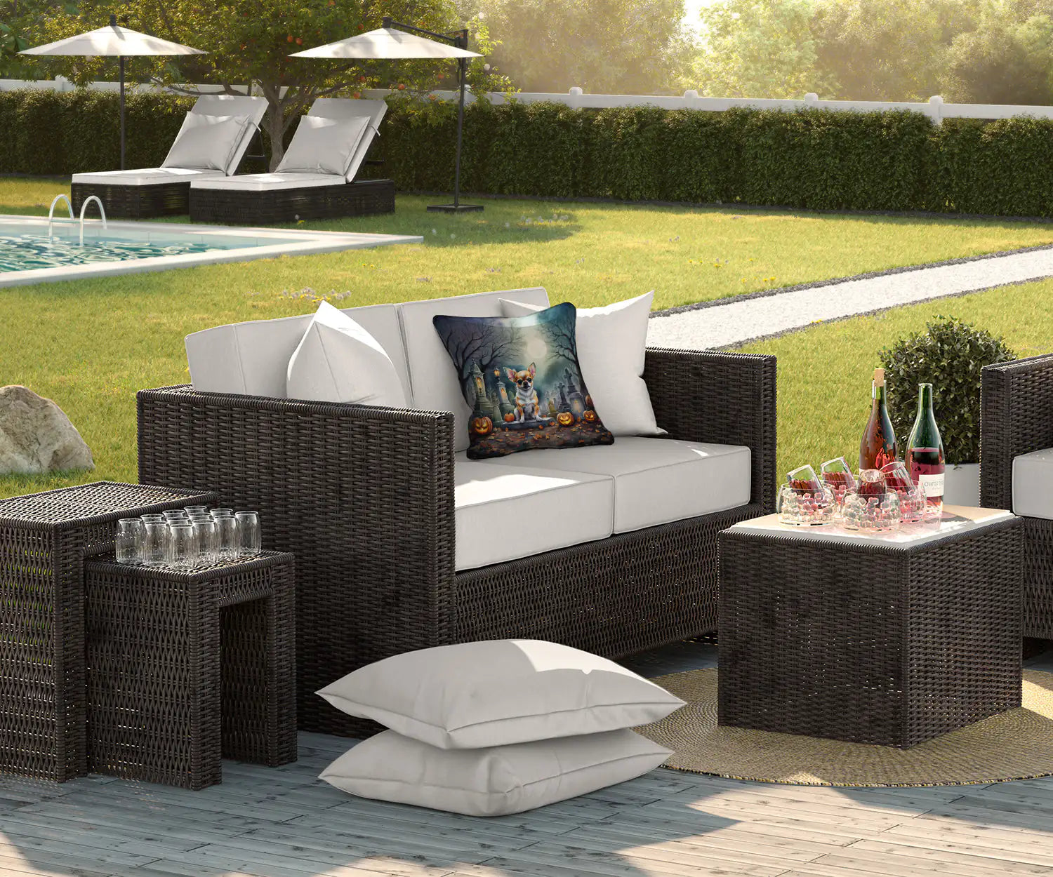 Throw Pillow featuring breed specific Chihuahua artwork. Celebrate Halloween with this Halloween Pillow. Revitalize your outdoor or indoor living space with Caroline's Treasures 18x18 Fabric Decorative Pillow. With a generously sized dimension of approximately 18 inches by 18 inches, this pillow makes a comfortable and aesthetic addition to any seating area. Made from a unique, water-resistant material developed by Caroline's Treasures, the pillow sham is 100% polyester fabric that's durable and ready to weather any condition. Its vibrant, full-color artwork will not fade over time as it is dyed with color-fast dyes. Whether you place it on your patio furniture, porch, veranda, or indoor couch, its soft canvas fabric ensures a cozy experience. The pillow is handcrafted in the United States, featuring a sham created from three pieces of fabric and a polyester insert for enduring shape and overstuffed comfort. Despite being robustly built to endure the outdoors, it is as soft and snug as your favorite indoor cushions. Please note, as all our pillows are handmade, sizes may vary slightly, adding to the charm of this unique decorative item.